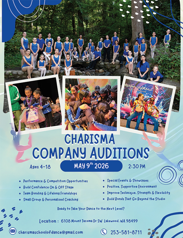 Charisma School of Dance was founded in 1998 in Lakewood, WA by Erin Fay. Ms. Erin began her dance studies at eight years of age. She became an assistant and substitute teacher at the age of eleven and by fourteen was a teacher at Suburban Dance Studio in Puyallup where she studied with Ms. Valli Hale and Tony Gamlieli. Ms. Erin has studied at Tacoma City Ballet, Pacific Northwest Ballet and was a private student of Kabby Mitchell. She has studied at Dance on Capitol Hill, Spectrum Dance Theater and Westlake Dance Center. During spring break she would study at Tremaine Dance Studio in Los Angeles. She studied with Joe Tremaine, Barry Lathers and Marguerite Derricks. Ms. Erin is a national and an international award winning choreographer. She opened Charisma at the age of twenty two and her dream was to own a school that was welcoming and encouraging to all dancers of every age, body style and ability. It is important to Ms. Erin that her school supports diversity and inclusion of all the dancers who walk through her studio doors.